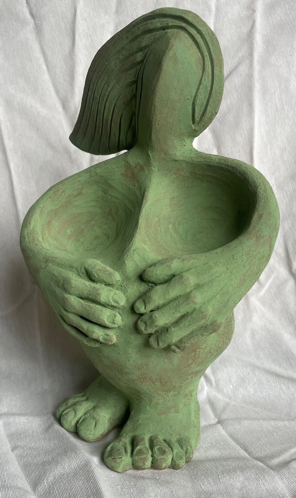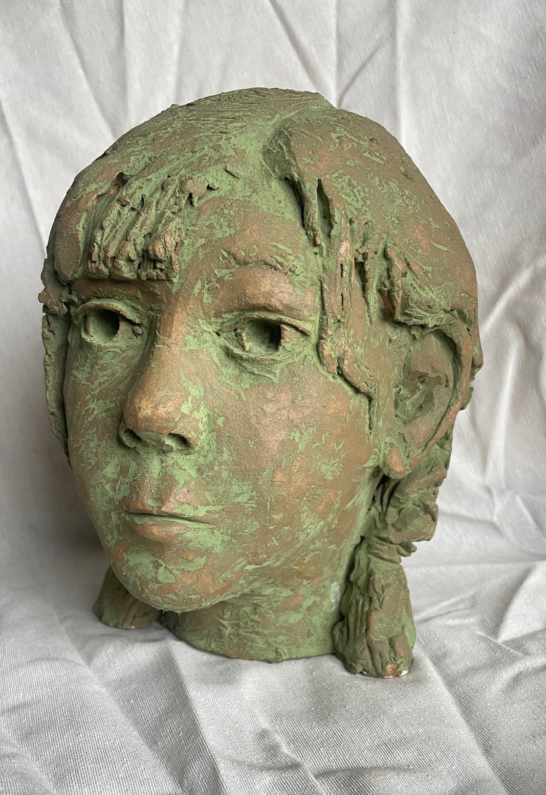 Modelado en barro refractario y pátina de cobre.